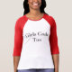 This [roduct has a great design for women. The sleeve style and length flattering. The fabric is quite stretchy so if you want a fitted look then go for your usual size, if want it a bit roomier go one size up. Printing is in black and very happy with it.