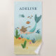 This cute, whimsical, and magical kids beach towel features a mermaid under the sea design, with a brunette mermaid, fish, crab, and seaweed. The blanket can be personalised with your girls name. The perfect girly gift for any mermaid enthusiast!