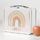 This cute and whimsical kids school lunch box features a boho rainbow illustration and a rainbow pattern. This beautiful design also features a place for you to add your girl's name. The perfect addition to any kid's kindergarten or preschool supplies.