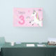 This cute and girly kids 3rd birthday banner design features a magical unicorn, with a rainbow, princess crown, planet, heart, and stars, and can be personalised with your child's name and age in a whimsical typography. The perfect pink unicorn addition to your little one's birthday, customisable for any age!