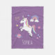 Girls Cute Magical Purple Unicorn & Name Kids Fleece Blanket