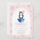 Girls Cute Penguin Winter Pink Birthday Invitation