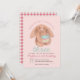 Cute and girly plush bunny kids birthday invitation with a soft rabbit toy on the front, the phrase “somebunny is turning..”, and pink gingham on the back. Perfect for a bunny, woodland, or cuddly girls birthday theme.