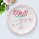This cute and modern girls birthday paper plate design features a t-Rex dinosaur skeleton. The plates can be personalised with your kids name - the perfect pink and bright dinosaur fossil dig themed tableware!