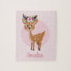 Girls Cute Pink Floral Deer and Flowers Kids Jigsaw Puzzle