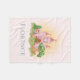 This magical and cute fairytale-themed kids fleece blanket design features a prince and princess, with an enchanted pink castle, butterfly’s, flowers, hares, a magical deer, and whimsical mushrooms. This pink and girly “once upon a time” design can be easily personalised with your girls name in an elegant font.