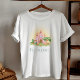 This magical and cute fairytale kids t-shirt features a prince and princess, with an enchanted pink castle, butterfly’s, flowers, hares, a magical deer, and whimsical mushrooms. This pink and girly “once upon a time” design can be easily personalised with your girls name in an elegant font.