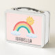 Personalised Cute Pink Girls Rainbow Metal Lunch Box