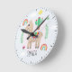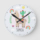 Girls Cute Pink Rainbow Llama Alpaca Kids Nursery Round Clock