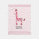 Girl's Cute Pink Safari Giraffe and Name Fleece Blanket