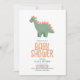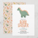 Girls Cute Pink T-Rex Dinosaur Flowers Baby Shower Invitation