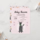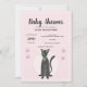 Girls Cute Pink Tabby Cat Cartoon Baby Shower Invitation