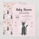 This cute, whimsical and modern girls baby shower invitation design features a grey tabby cat cartoon with paw prints, with a siamese cat, ginger tabby kitten and fluffy white cat pattern on the reverse, and can be personalised with the parent's names and other details necessary for your party. The perfect girly kitty cat themed addition to your co-ed couples pink animal baby shower.