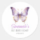 Girls Cute Purple Butterfly 1st Birthday Party Classic Round Sticker