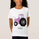 Girls Cute Purple Farm Tractor Cartoon with Name T-Shirt