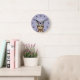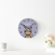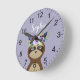Girls Cute Purple Flower Sloth and Name Kids Round Clock