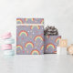 Gorgeous purple wrapping paper with a retro pastel rainbow pattern with magical stars. Perfect for a girls birthday.