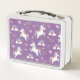Girls Cute Purple Magical Unicorn & Name Kids Metal Lunch Box