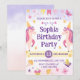 Girls Cute Purple Unicorn Kids 1th Birthday Invitation