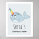 Girls Cute Rainbow Narwhal Cartoon Name Kids Room Poster