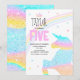 Girls Cute Rainbow Unicorn Kids 5th Birthday Invitation