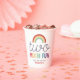 Celebrate turning two with these adorable “Two Much Fun” birthday paper cups! Featuring a modern retro rainbow, colorful font and space to add your child’s name on the front and back. Perfect for a 2nd birthday party.