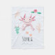 This cute kids fleece blanket features an axolotl illustration, with flowers, river plants, and waves, and space to add your girls name. The perfect whimsical and unique gift for your salamander-loving child!