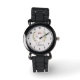 This beautiful and chic kids watch design features a cute white cat cartoon and watercolor flower wreath, with a customisable background colour and a place for your to add your girl's name in an elegant font.