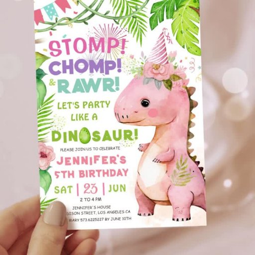 Girls Pink Dinosaur 5th Birthday PartyDesigned by H-Art Studio Design