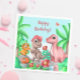 Fun and colourful dinosaur birthday napkins featuring cheerful pink, orange, and brown dinosaurs surrounded by tropical leaves and flowers. A playful touch for a girl’s prehistoric-themed celebration — perfect for adding personality to the party table while coordinating with matching dinosaur party supplies.