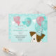 This girl's birthday party invitation features an adorable Jack Russell Terrier peeking over the bottom edge of the invitation card wearing a colourful wavy teal, grey and white striped birthday party hat with a tassel - teal, pink and white flag bunting is hanging in the background and pink and teal balloons with white ribbons are scattered about on a light teal / turquoise background - reverse of card is light teal / turquoise with tiny paw prints pattern in white - customise with your child's party details - Jack Russell Terrier with Head Tilt design © katz_d_zynes 2019