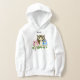 This lovely Girls personalised white zipped hoodie features an Owl family, one big brown owl and two smaller cute baby owls, one blue and one pink, sitting on a tree branch. The name on the hoodie can be changed to make it truly personal. A lovely gift and ideal to combine with matching gifts and stationery. Perfect for an owl lover.