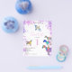 Get your child’s 1st birthday party off to a great start with this adorable collection of fun colourful watercolor goat illustrations in vibrant pink, purple, blue, orange, yellow and aqua. A cute farm animals first birthday party budget invitation with baby goats and goats standing on goats. This fun party invitation is easy to personalised to create a unique party invitation suitable for children and adult goat lovers. Colourful pink themed psychedelic goat original illustrations by artist Catherine Sweetman