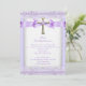Girls First Holy Communion Cross Pretty Lavender Invitation