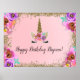 Girls Floral Gold Glitter Unicorn Birthday Banner Poster