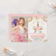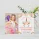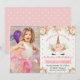 Looking for a girl's unicorn birthday invitation? This birthday invitation template may be what you're looking for, for your little girl. The design features a few floral arrangements, a banner and a polka dot pattern background. This unicorn birthday invitation can be used for various ages.