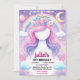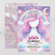 Girls girly cute purple pink unicorn 1st birthday invitation