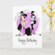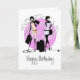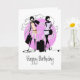 Funky, trendy stick figure silhouettes of shopping divas with attitude wearing modern retro clothing in pastel purple and orange, surrounded by bags of shopping, a pink circle and floral swirls. CUSTOMIZE IT - Change the wording to suit any birthday, wedding, family or friendship occasion. BACKGROUND COLOR - Use the "customise it" button to change it to any colour of your choice.