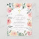 Girl's Gold Cross Pink Floral First Holy Communion Invitation Postcard