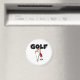 A stick figure female golfer and text that reads "GOLF" is featured on stick figure womens golf Tshirts, mugs, tote bags, cards, and other golfing gear that you can customise with a name!