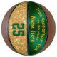 Girls Green and Gold Personalised Basketball Ball. Cool faux Gold Glitter and Green Basketball or YOUR COLORS. 4 Text Boxes for Your Text or Delete. CALL Designer Linda: 239-949-9090 to CHANGE to Your Basketball Team Gifts COLORS or your favourite Colours, create different personalised basketball gifts for girls or boys and coaches. Fantastic Ideas for girls basketball senior night gift Ideas or girls basketball gifts for girls basketball team.