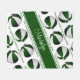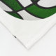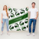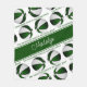 This cute basketball themed fleece blanket features the realistic images of basketballs that have alternating green and white panels arranged in an angled mirrored pattern - the phrase "The basketball court is my happy place" in a casual handwritten-style font in green stretches between the angled rows of basketballs - athlete's name can be personalised on a similarly angled full width green colour strip - background is customisable white - by katz_d_zynes