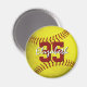 This softball themed magnet features the image of a realistic, grungy looking yellow softball upon which you can easily customise the athlete's name & jersey number - by katz_d_zynes