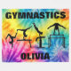 Beautiful swirls of colour! This design says gymnastics and is also personalised with the name of your gymnast! Features 4 beautiful gymnast silhouettes each doing a different event in gymnastics.