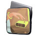 Girls hand pushing on alarm clock snooze button laptop sleeve