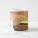 Girls hand pushing on alarm clock snooze button large coffee mug