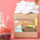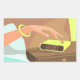 Girls hand pushing on alarm clock snooze button rectangular sticker