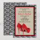 Get ready to party with this wild invitation. The zebra background features a red and black border and lady's red, high heel shoes.