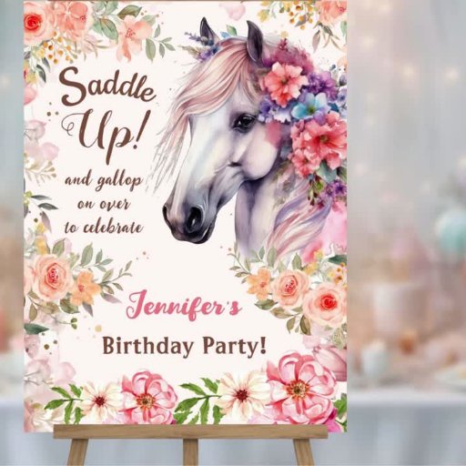 Girls Horse 1st Birthday Pink Flowers CollectionDesigned by H-Art Studio Design