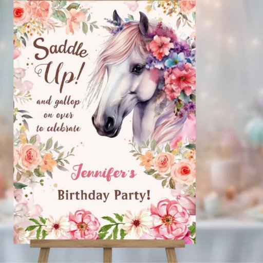 Girls Horse 6th Birthday Pink Flowers CollectionDesigned by H-Art Studio Design